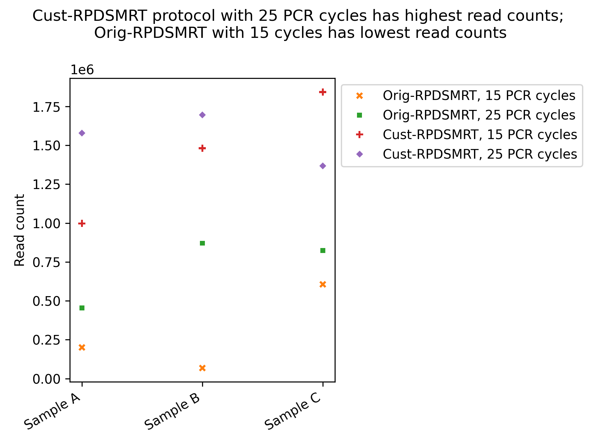 Figure 5: Read counts for each sample/protocol combination